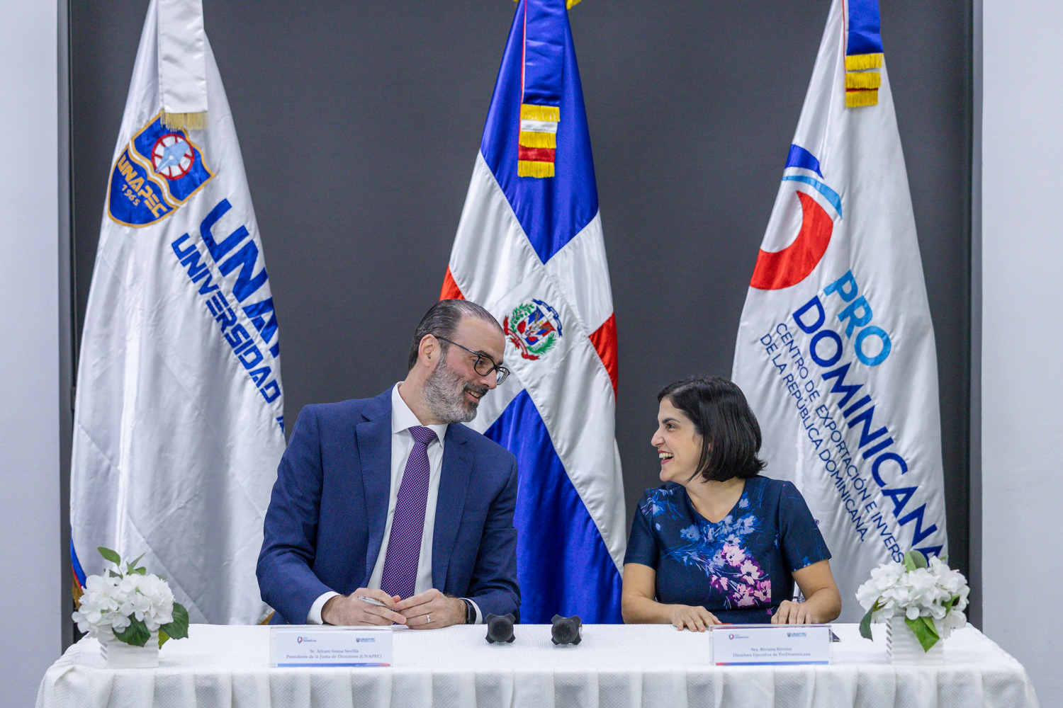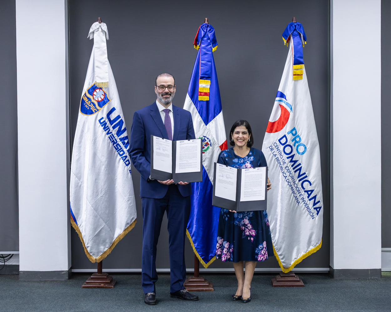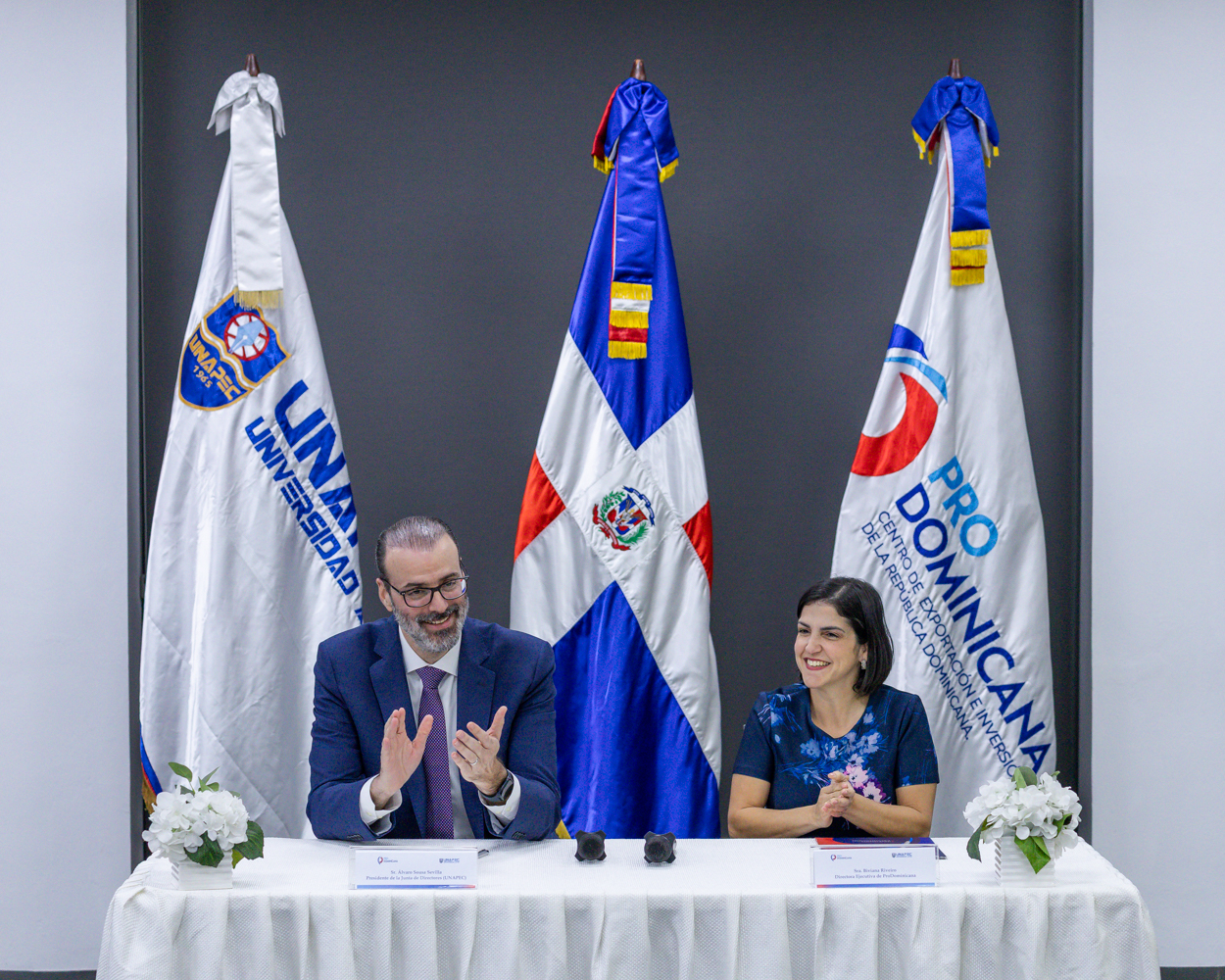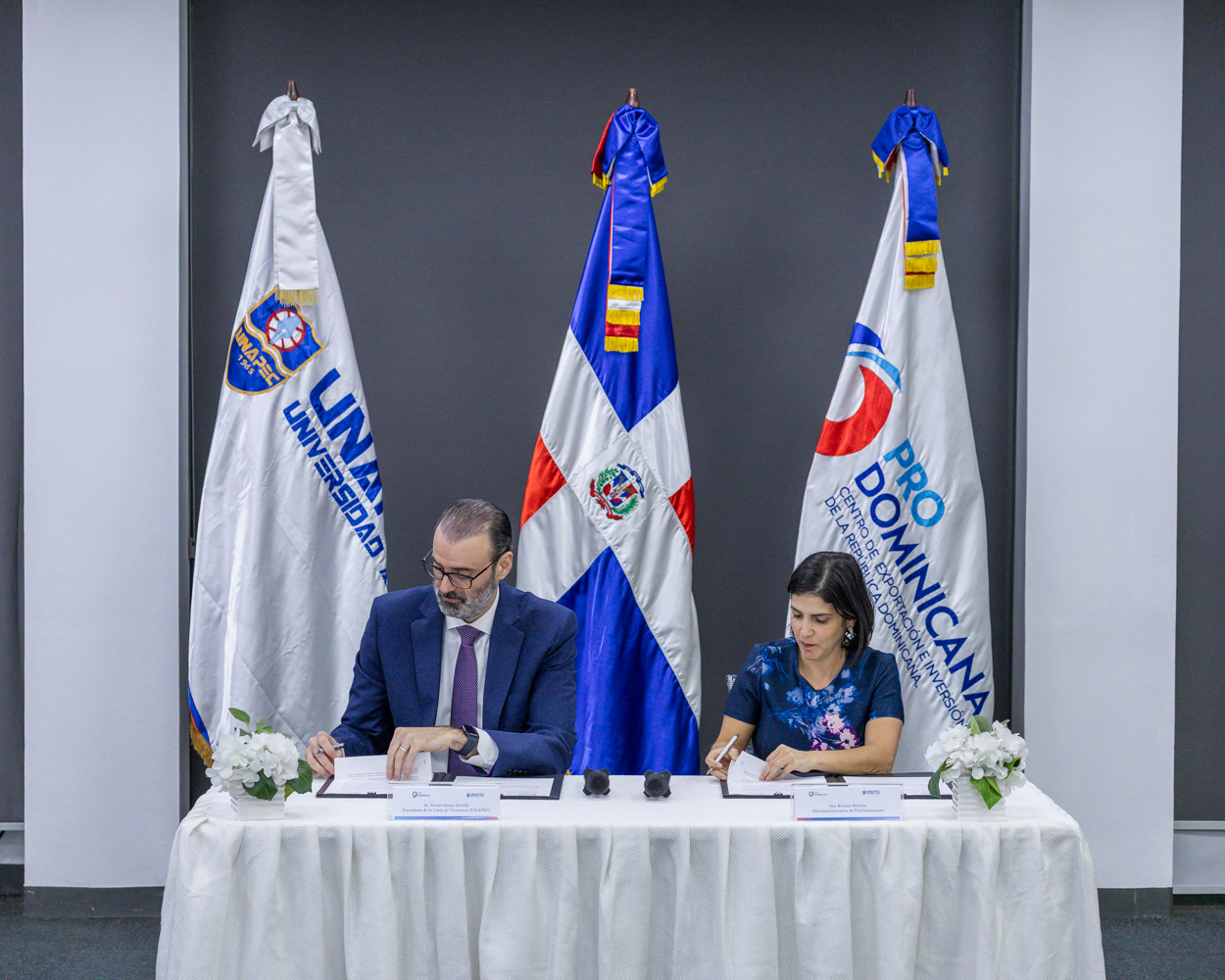 El acuerdo fue suscrito por Biviana Riveiro Disla, directora ejecutiva de ProDominicana, Alvaro Sousa Sevilla, presidente de la Junta de directores de Unapec, y como parte de la renovación del convenio firmado originalmente en febrero de 2024, cuya vigencia culmina próximamente, reafirmando así el compromiso de ambas instituciones con la educación superior, la innovación y el desarrollo económico nacional.
