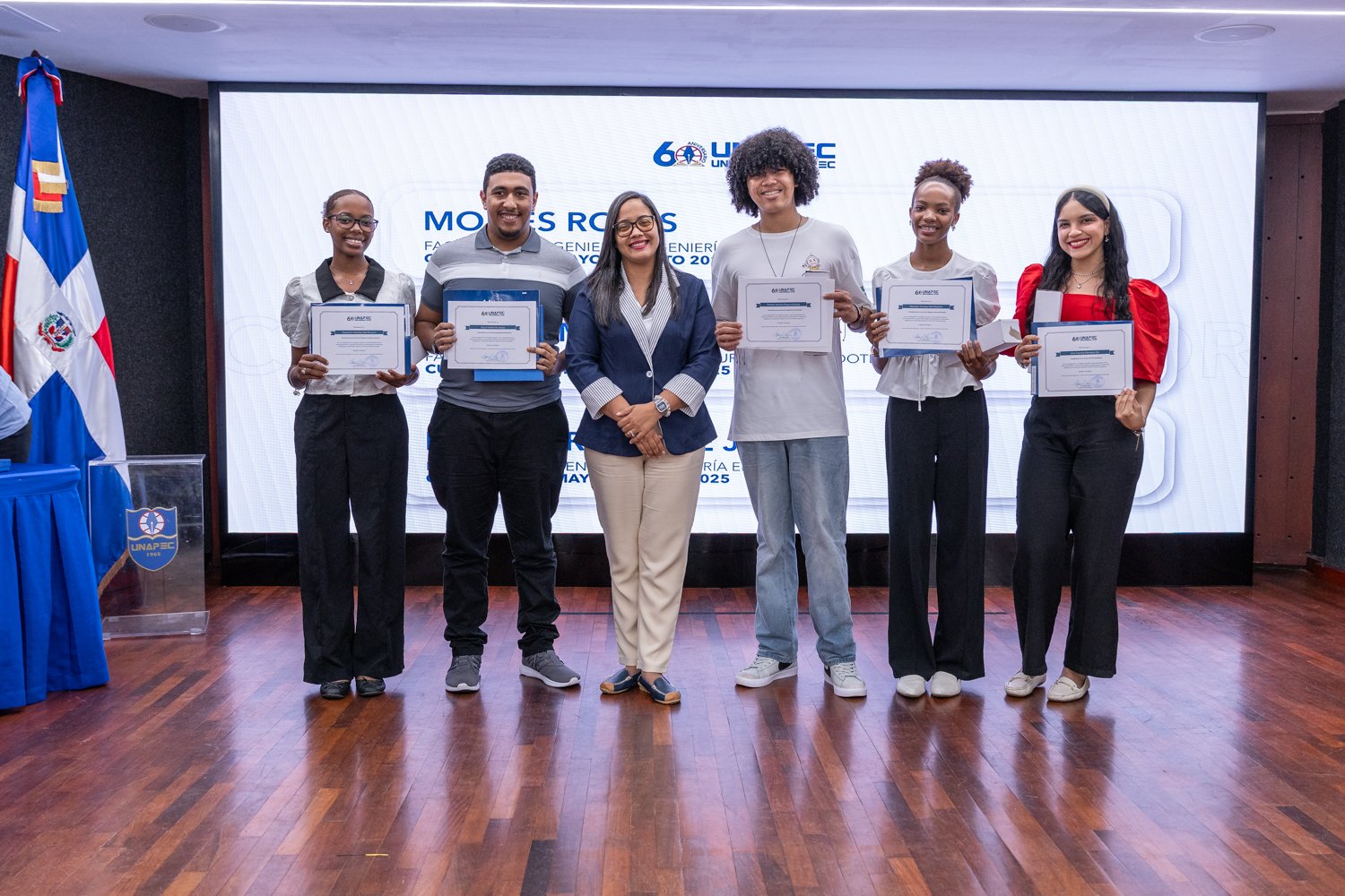 Asimismo, recibieron reconocimiento los estudiantes Joel Alejandro Oviedo Estrella, Cristhian José Rosa Féliz, Karla Batista Núñez, Alba Génesis Guerrero Castro, Lissa Marie Guzmán Villamar y Wilneyi Guzmán, por su liderazgo en la actividad UNAPEC Sostenible, reflejando su compromiso con la conciencia ambiental.
