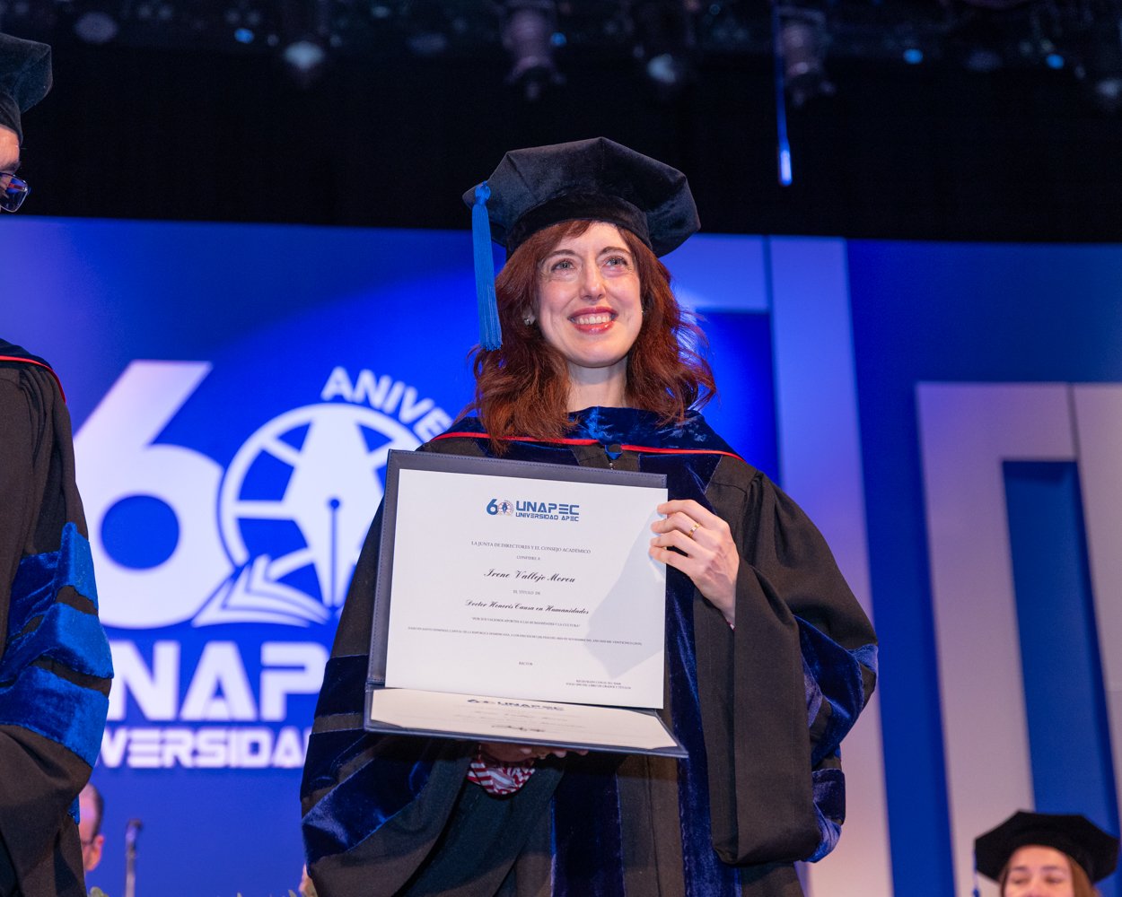 La distinción a Irene Vallejo se inscribe en las actividades del 60 aniversario de UNAPEC, donde la universidad celebra la vigencia del saber y la cultura como cimientos del desarrollo nacional.”
