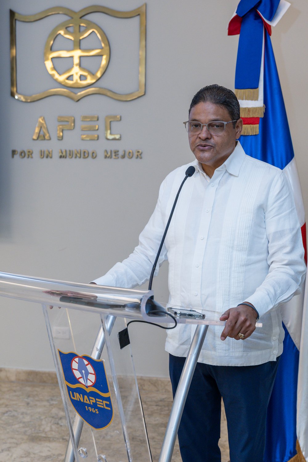 Las palabras centrales del acto estuvieron a cargo del rector de Unapec, Lic. Erik Pérez Vega, quien resaltó que la misión educativa no puede desligarse de la responsabilidad institucional de garantizar seguridad, protección y continuidad académica ante cualquier eventualidad.