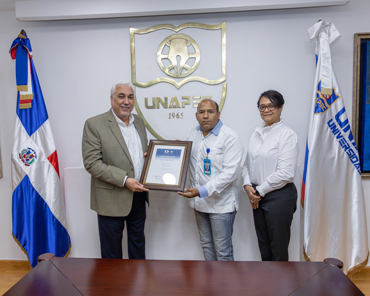 “Queríamos realmente felicitarte y darte las gracias por ser parte de Unapec. Este reconocimiento es también un orgullo para nosotros como universidad”, destacó el rector de Unapec, Lic. Erik Pérez Vega durante la entrega.