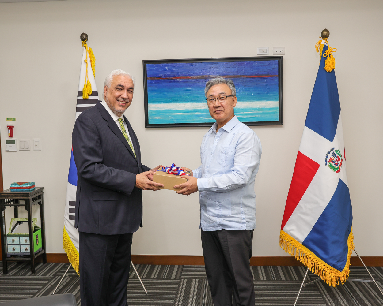 Santo Domingo, D.N. El embajador de Corea en la República Dominicana, excelentísimo Sang Ryul Lee, recibió en su sede diplomática al rector de la Universidad APEC, Lic. Erik Pérez Vega, en un encuentro realizado con el propósito de estrechar lazos de colaboración académica, cultural y científica entre ambas naciones.