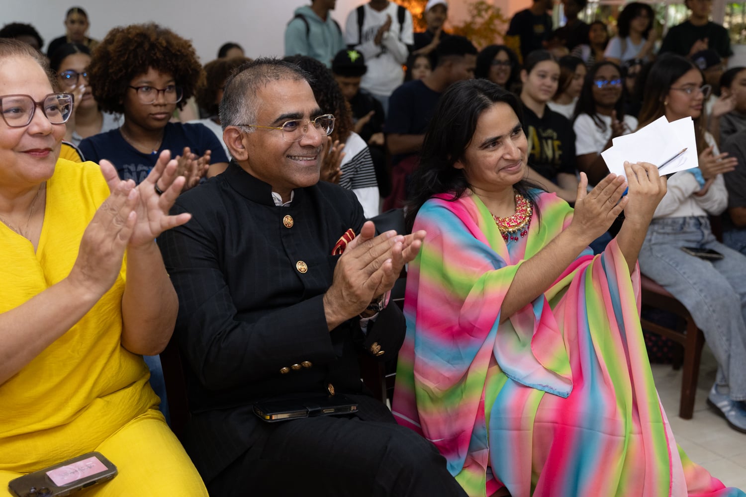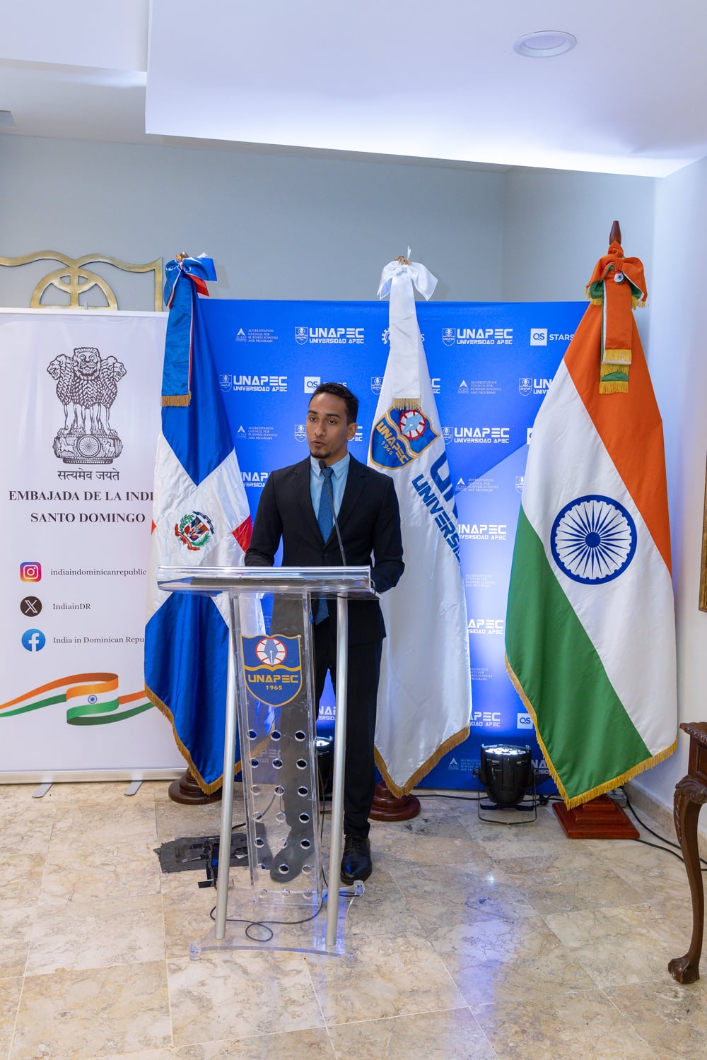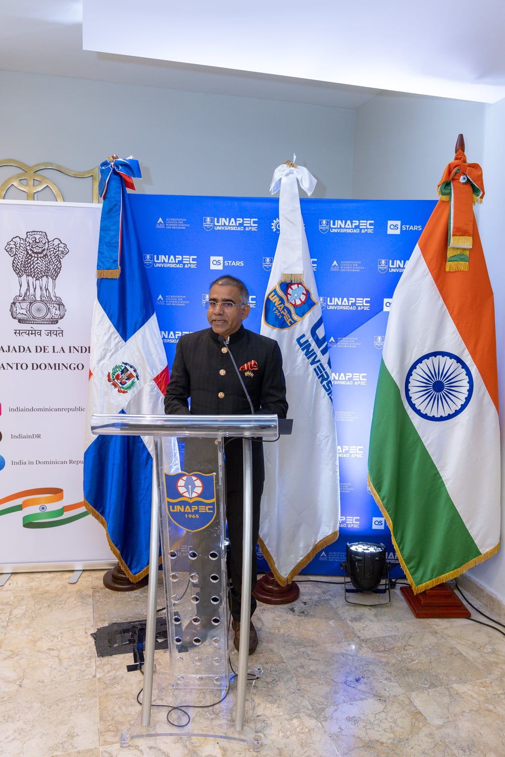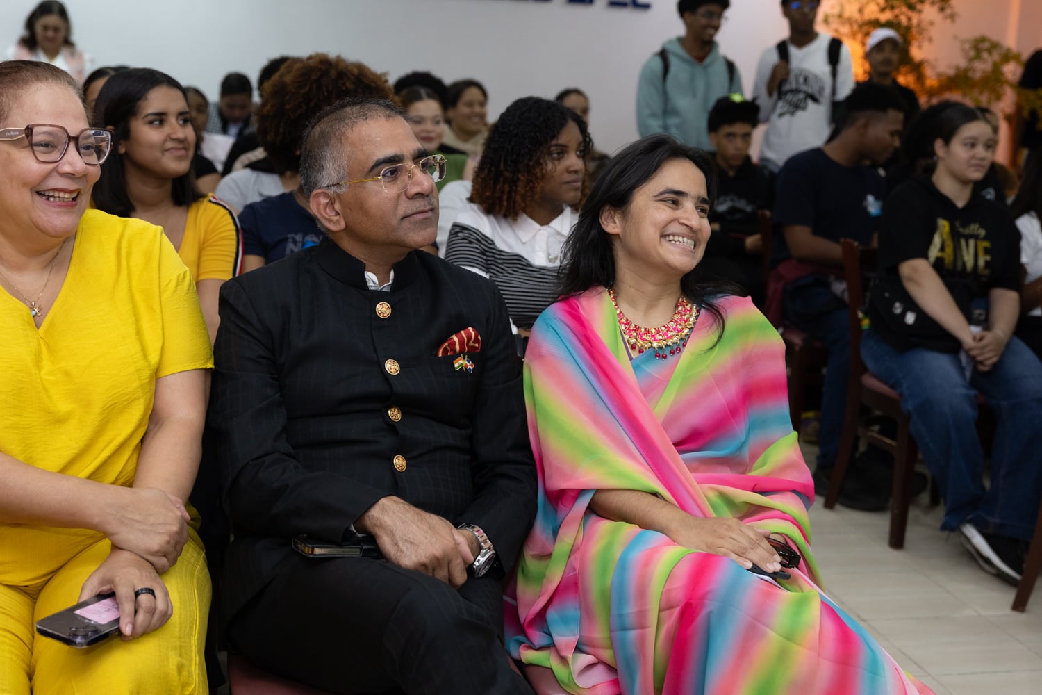 En representación de la misión diplomática india, estuvieron presentes el Sr. Arup Saha, jefe de Cancillería; el Sr. Vikram Thakur, segundo secretario de la Embajada de la India ante la República Dominicana; y la Sra. Hina Usmani, agregada de Prensa, Información y Cultura, junto a otros miembros del cuerpo diplomático acreditado en el país.