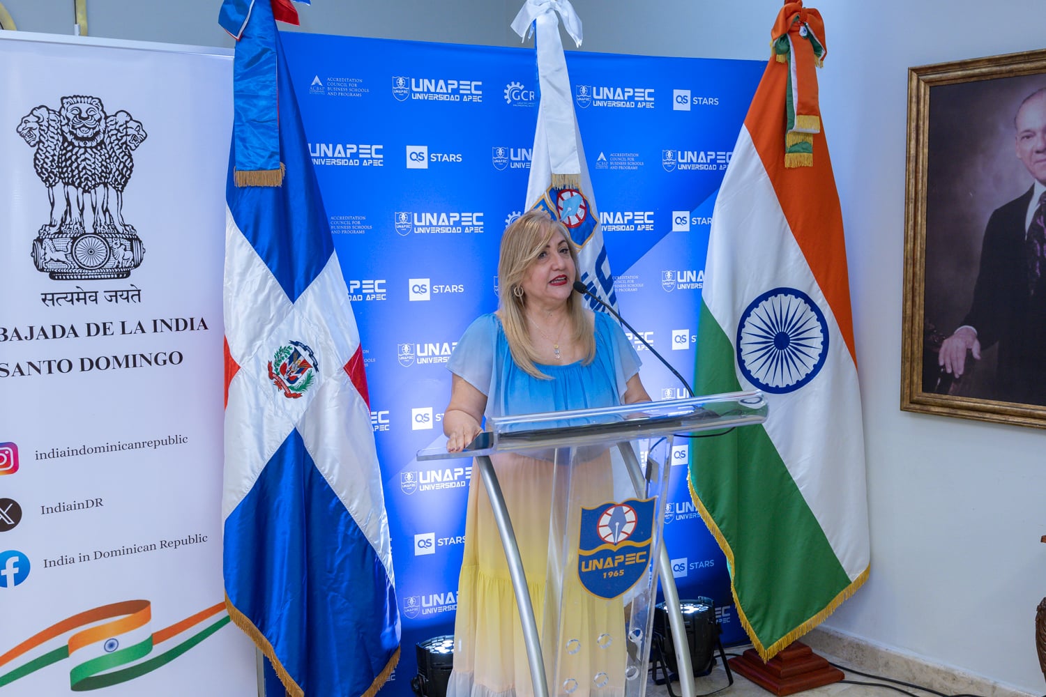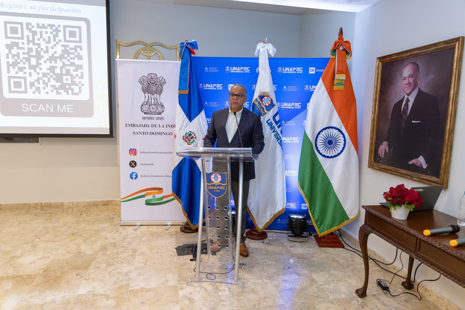 El acto fue encabezado por el Lic. Alejandro Moscoso Segarra, vicerrector Académico Interino de Unapec, junto a Su Excelencia Kishan Dan Dewal, embajador de la India ante la República Dominicana, quienes resaltaron el valor del acercamiento entre culturas como vía para fortalecer las relaciones bilaterales y ampliar las oportunidades de cooperación académica y cultural.