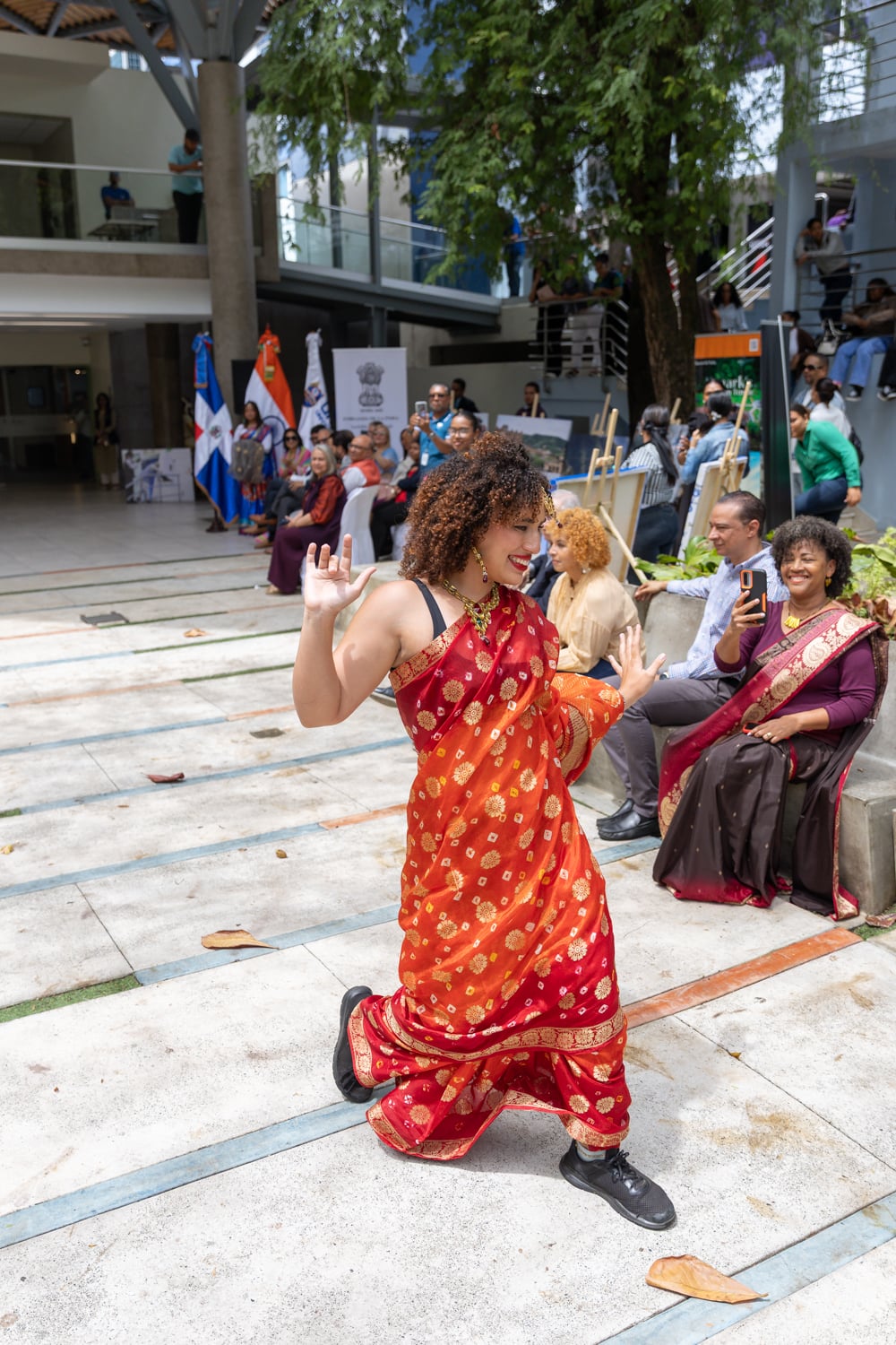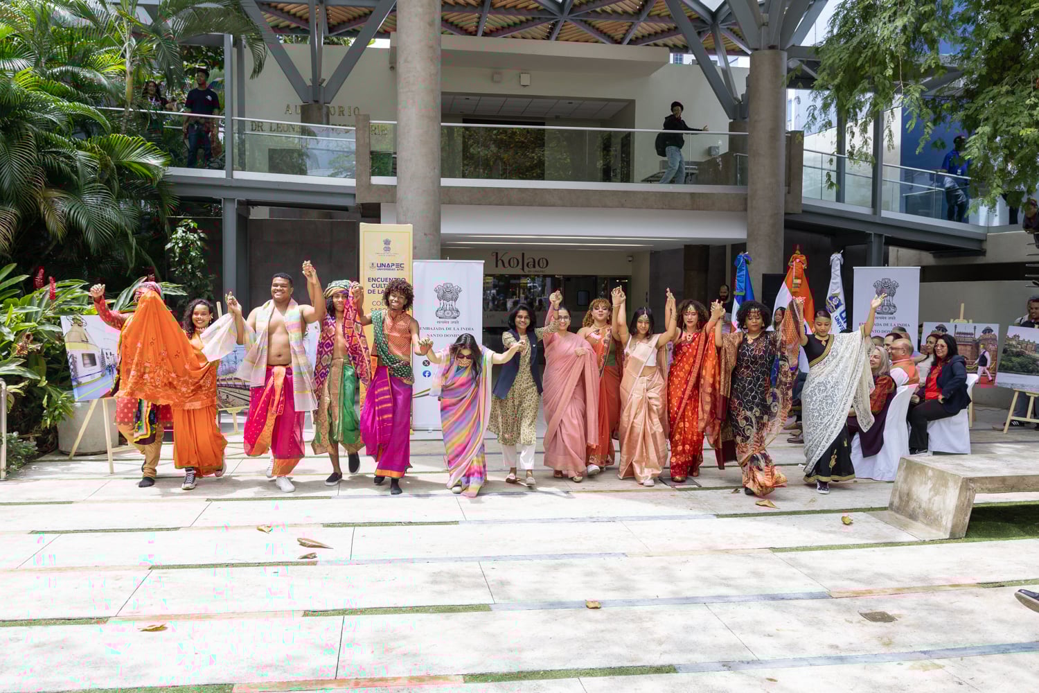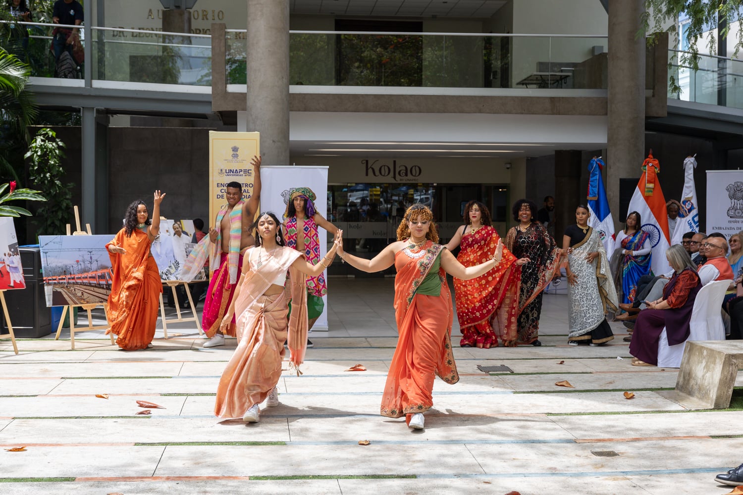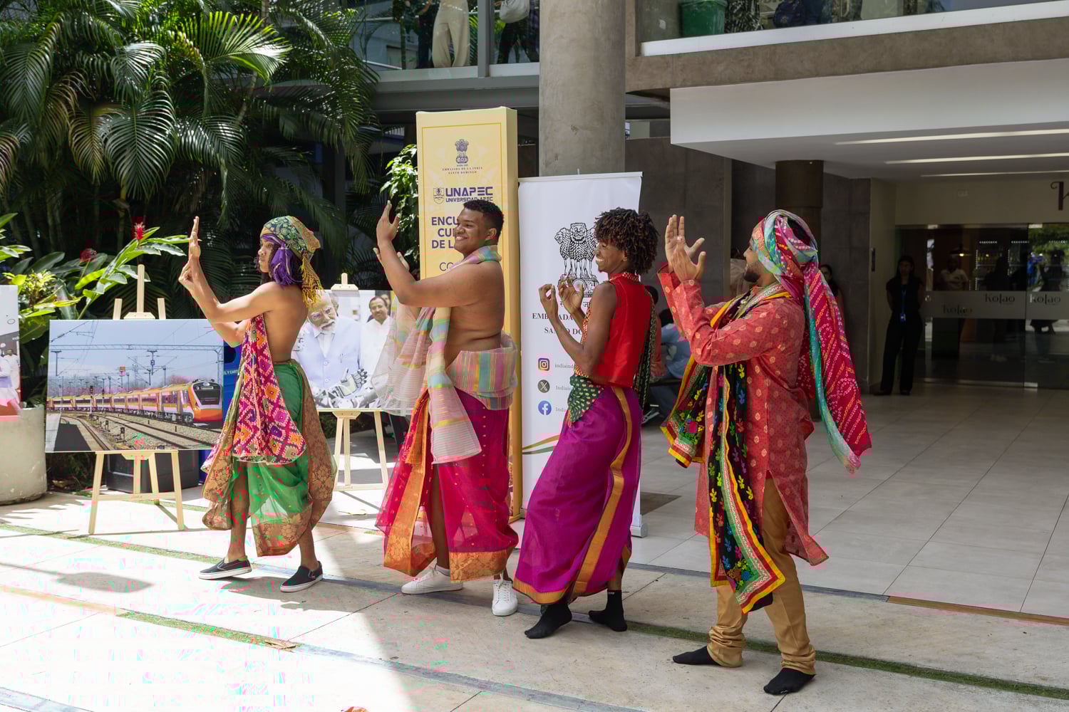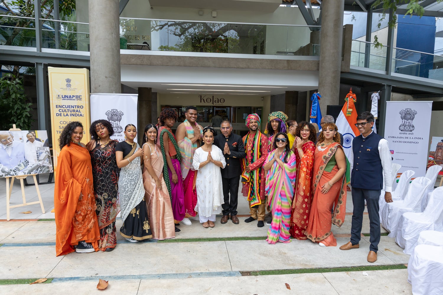 Concluido el acto inaugural, el programa continuó con la Muestra Cultural, desarrollada en la explanada frontal de la cafetería del campus, donde los asistentes disfrutaron de una introducción a la cultura india, la inauguración de una exposición fotográfica, presentaciones de danza clásica y un desfile de moda con la participación de estudiantes de Unapec, propiciando un acercamiento directo a diversas expresiones artísticas y tradicionales de la India.