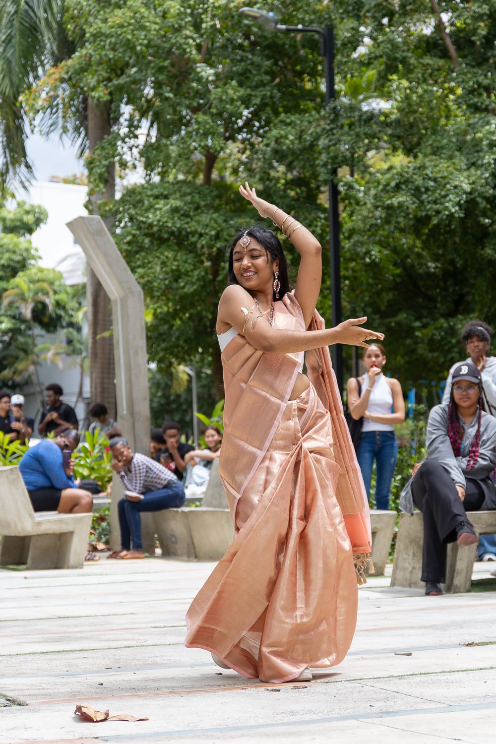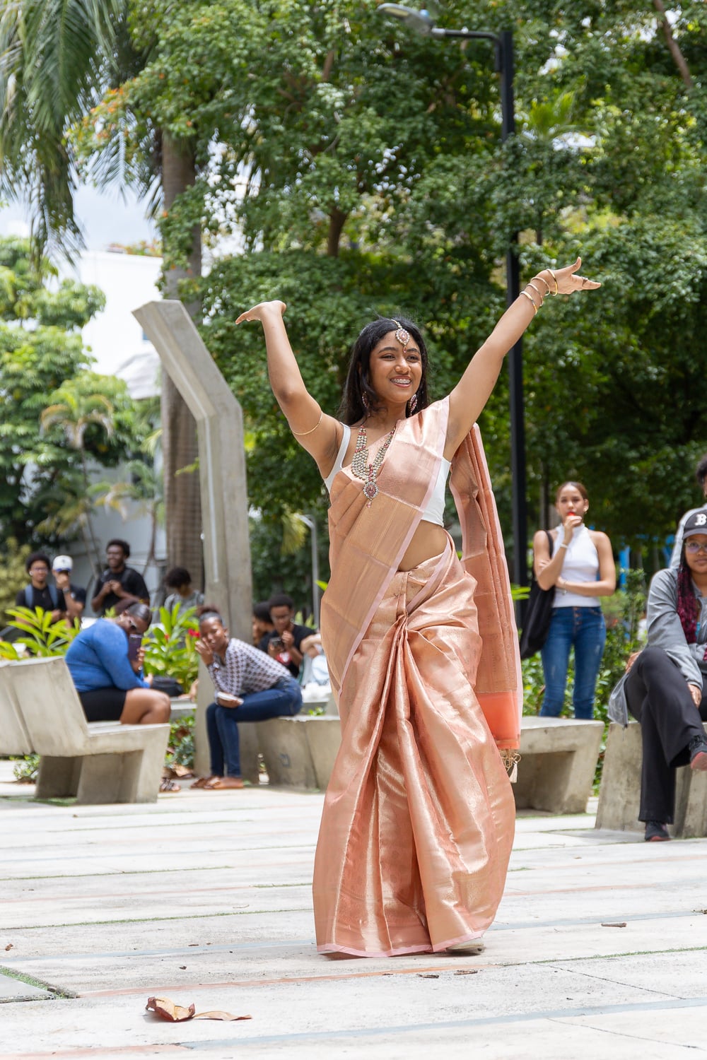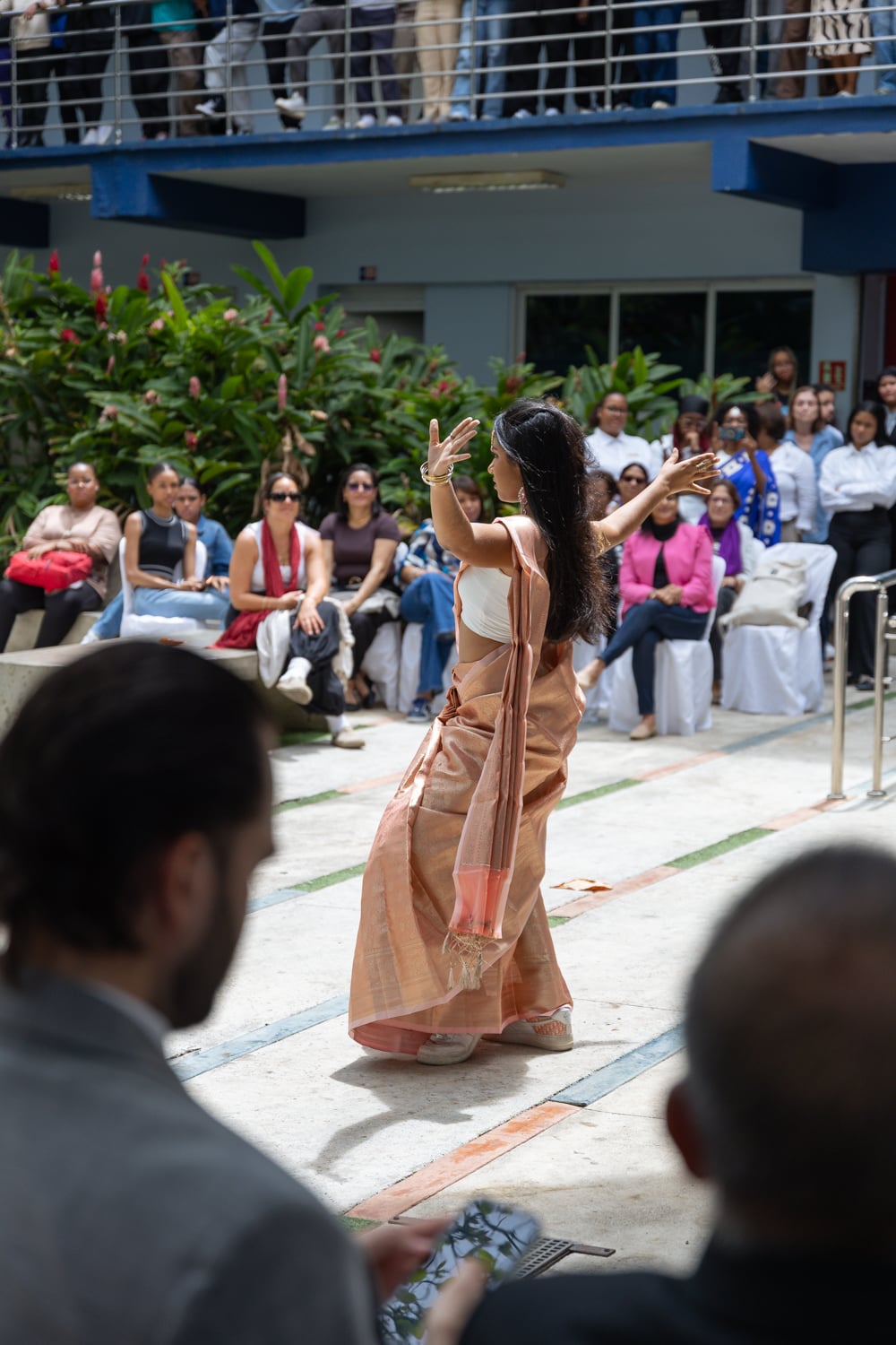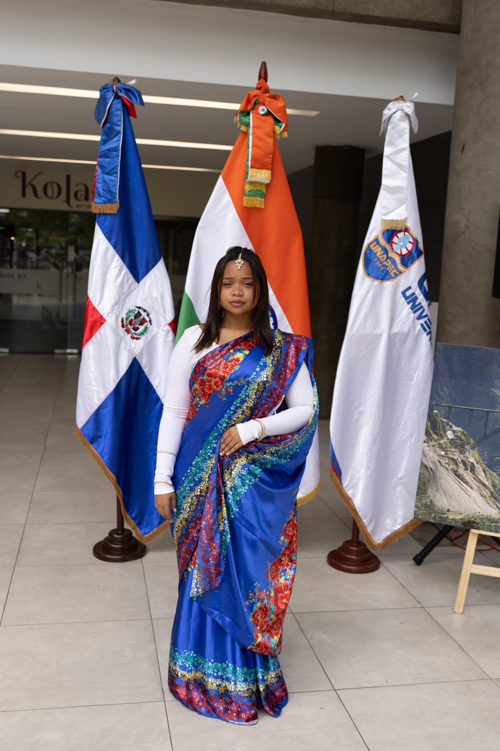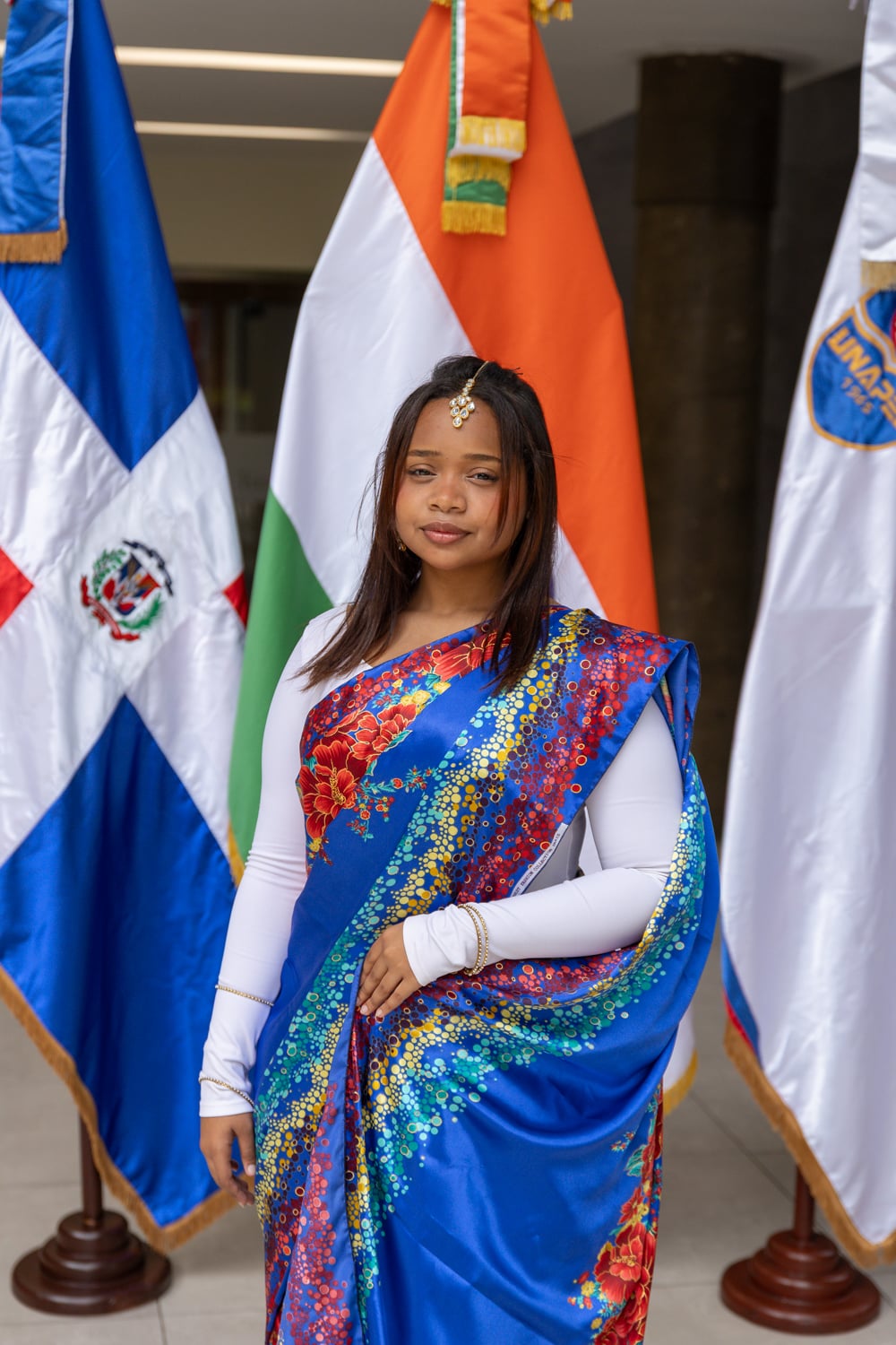 Concluido el acto inaugural, el programa continuó con la Muestra Cultural, desarrollada en la explanada frontal de la cafetería del campus, donde los asistentes disfrutaron de una introducción a la cultura india, la inauguración de una exposición fotográfica, presentaciones de danza clásica y un desfile de moda con la participación de estudiantes de Unapec, propiciando un acercamiento directo a diversas expresiones artísticas y tradicionales de la India.