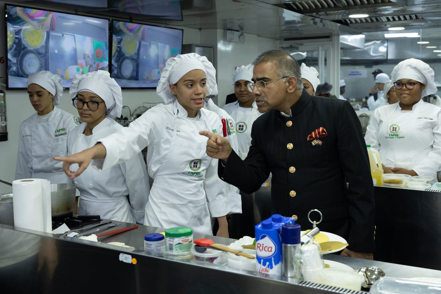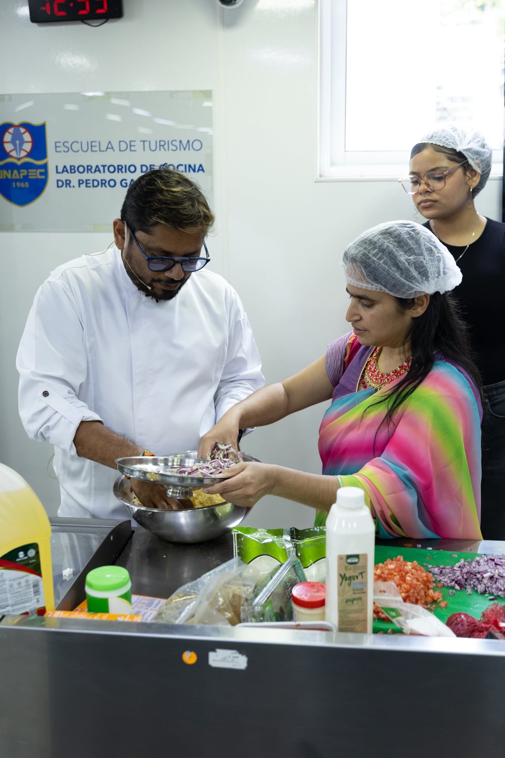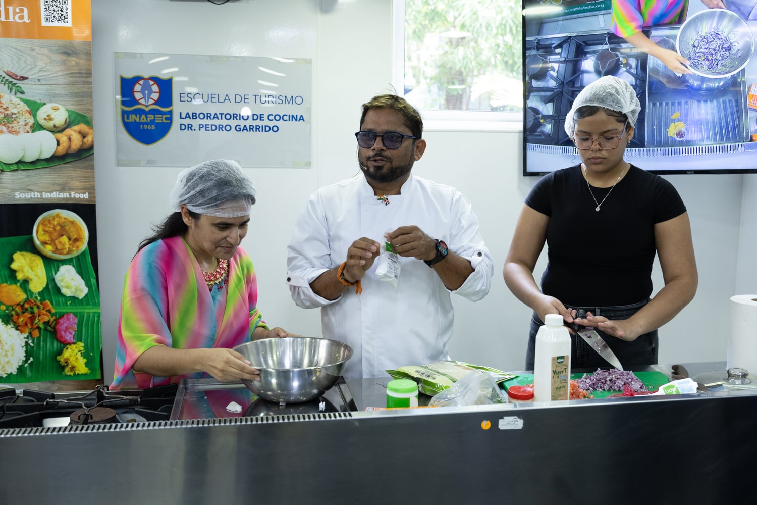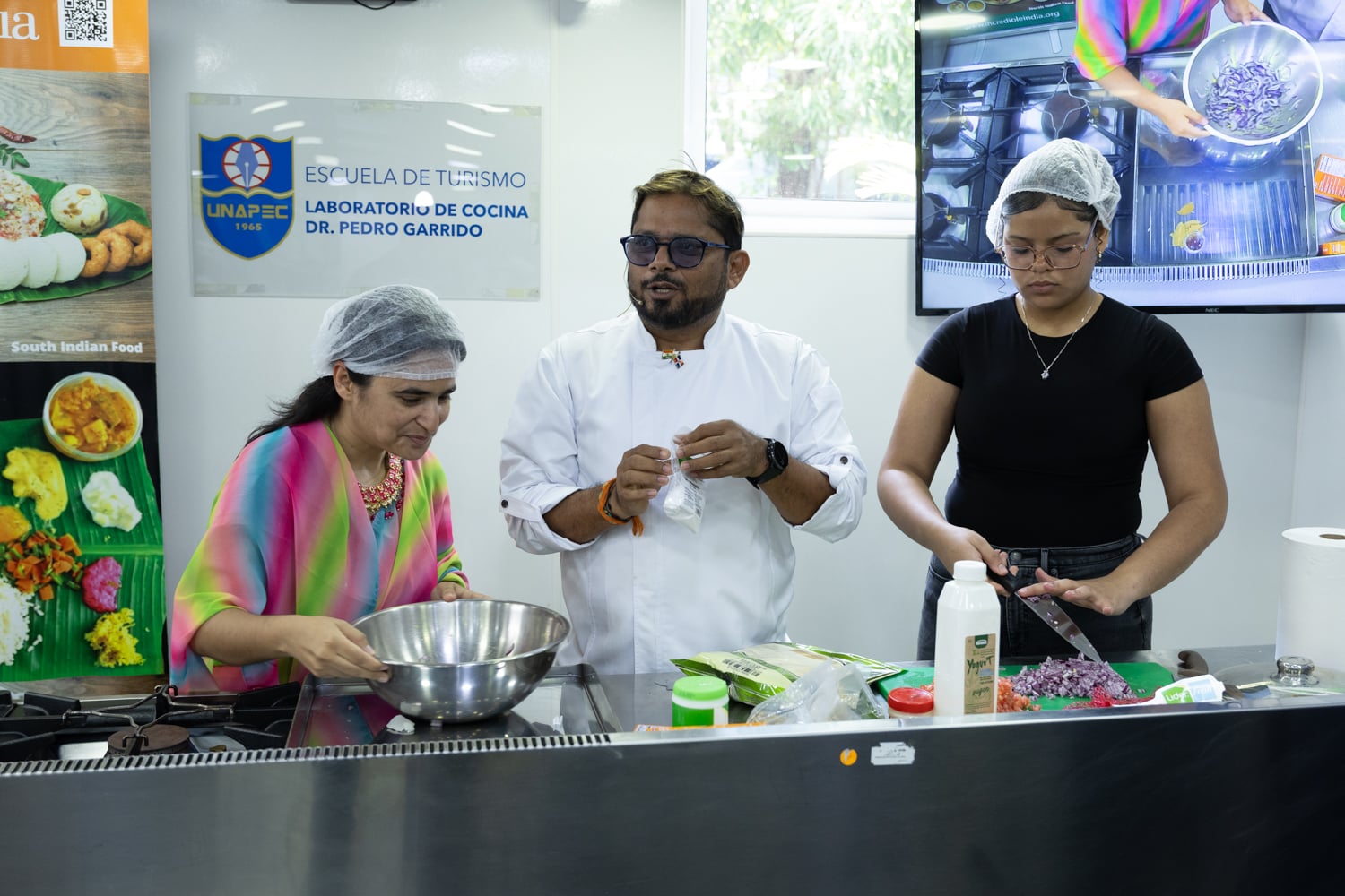 Posteriormente, las actividades se trasladaron al Salón Gastronómico Dr. Miguel Arnau Mont, donde se desarrolló la Experiencia Gastronómica, orientada a resaltar la riqueza culinaria del país asiático. En este espacio, estudiantes y el chef Krishna Duddukuri, reconocido exponente de la cocina india en la República Dominicana, compartieron conocimientos y técnicas a través de presentaciones y demostraciones culinarias.