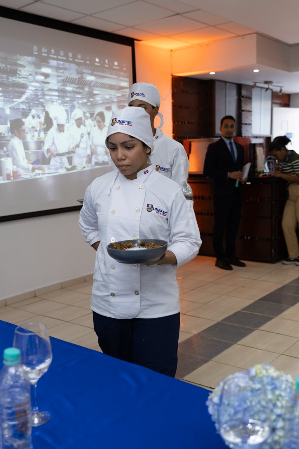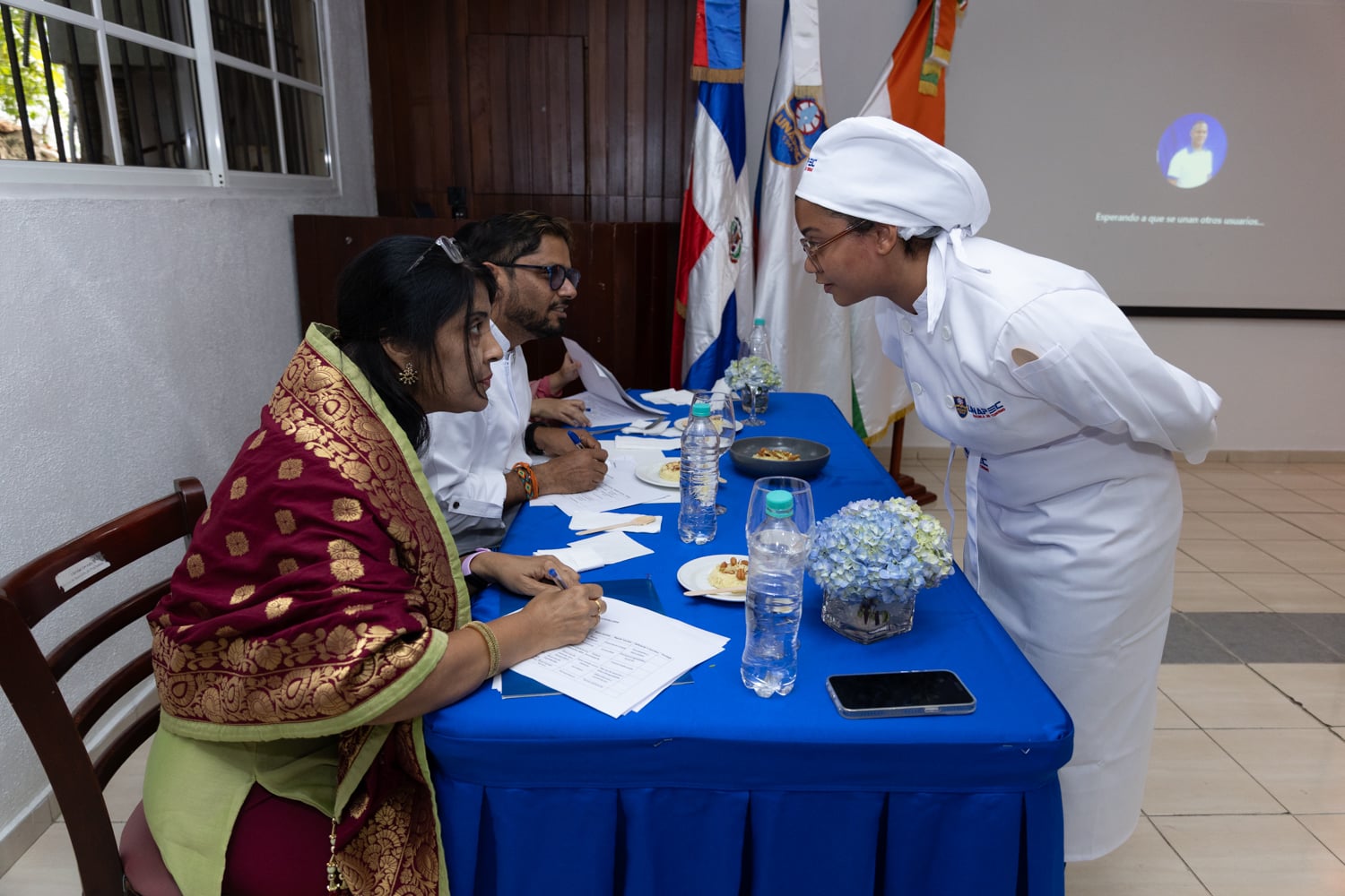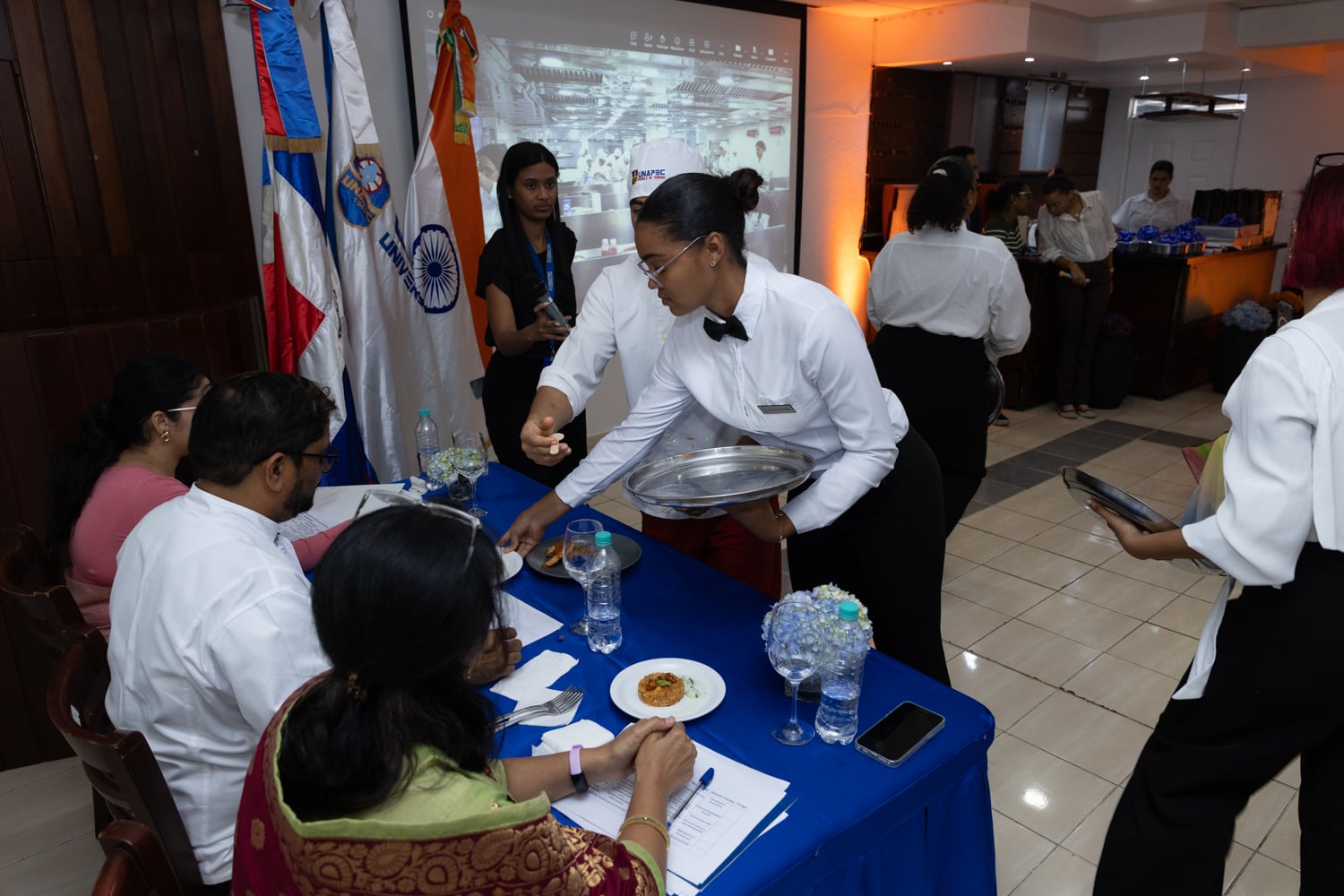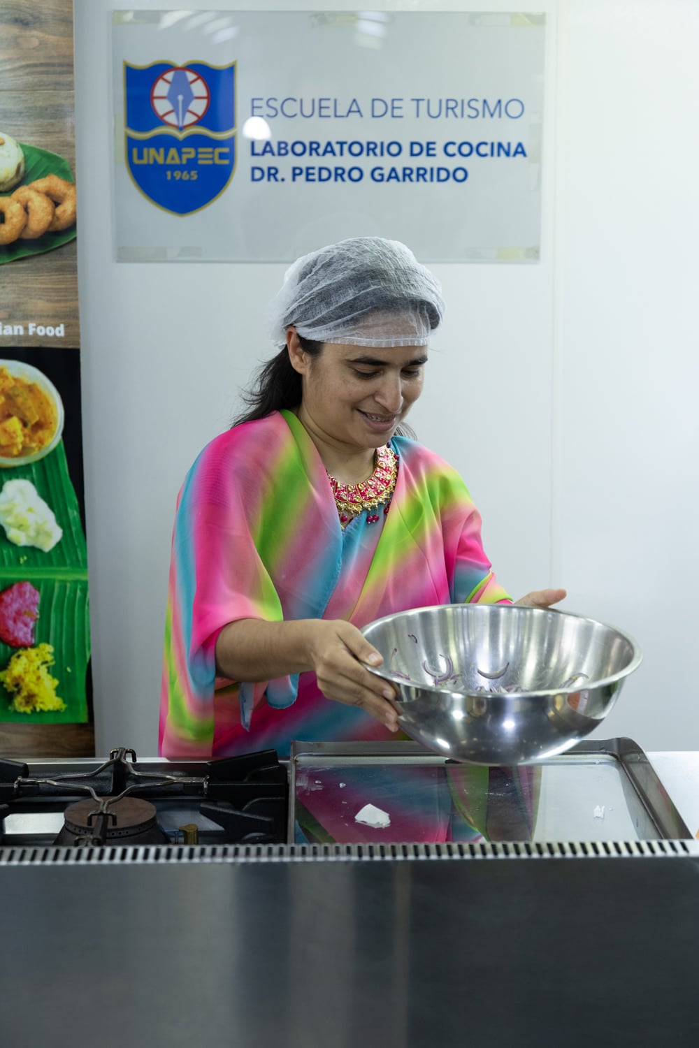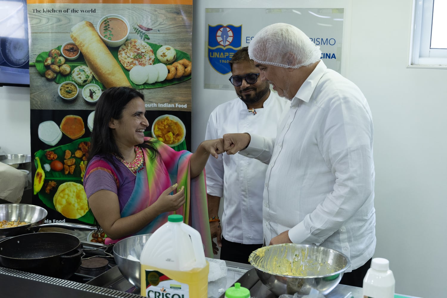 Posteriormente, las actividades se trasladaron al Salón Gastronómico Dr. Miguel Arnau Mont, donde se desarrolló la Experiencia Gastronómica, orientada a resaltar la riqueza culinaria del país asiático. En este espacio, estudiantes y el chef Krishna Duddukuri, reconocido exponente de la cocina india en la República Dominicana, compartieron conocimientos y técnicas a través de presentaciones y demostraciones culinarias.